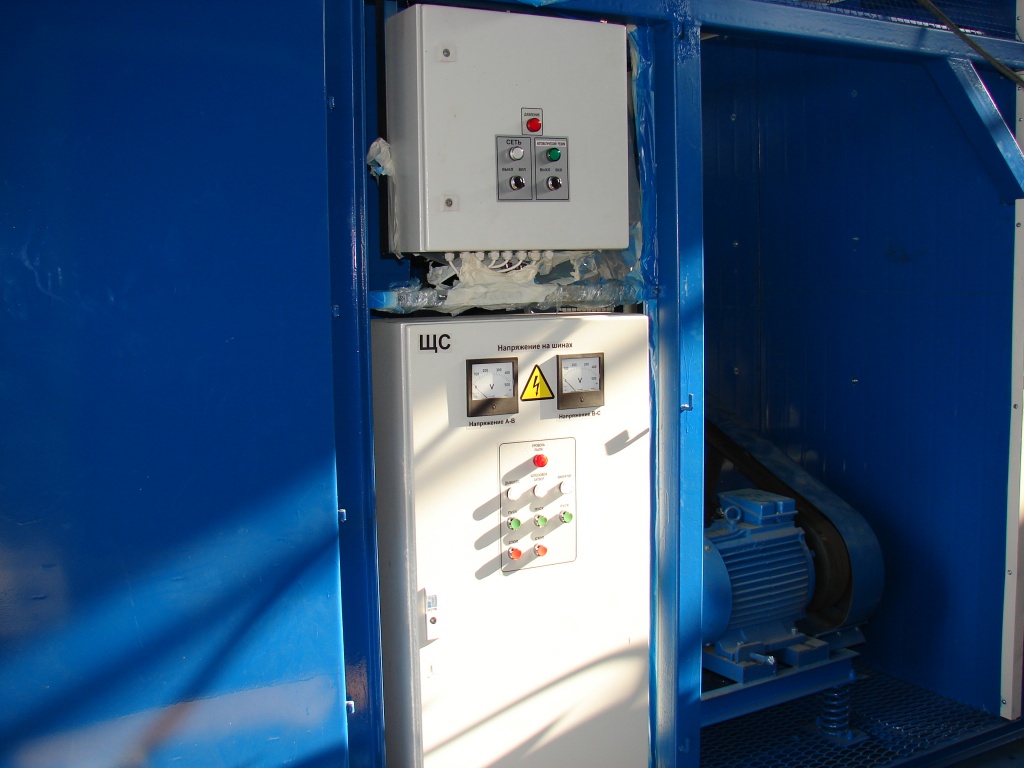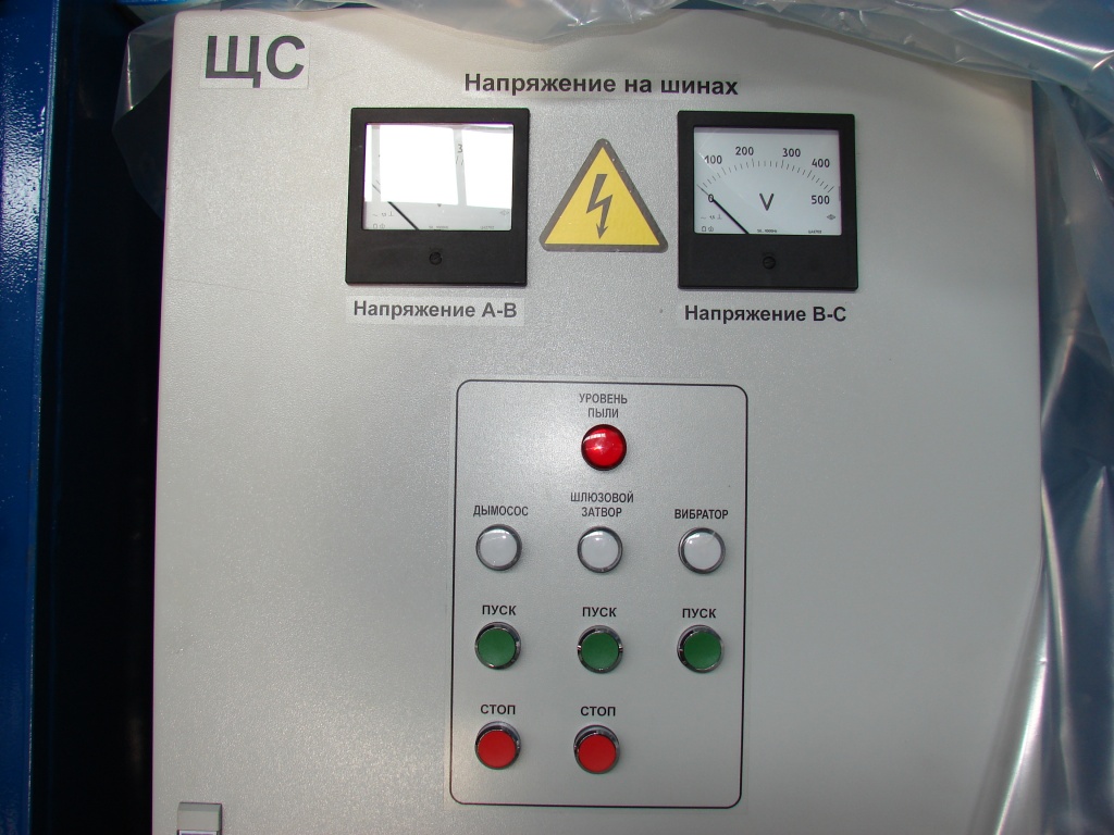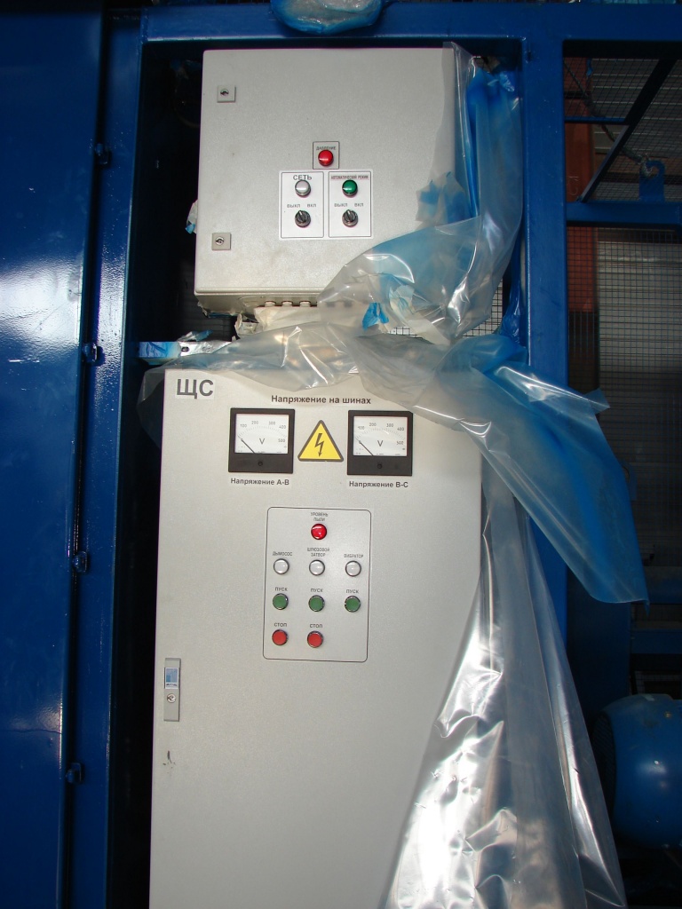 Шкаф питания содержит полный комплект коммутирующей и защитной силовой электроаппаратуры питания вентилятора/дымососа, компрессорной установки, фильтра и пылевыгрузки. Встроенная автоматика управляет работой системы регенерации, компрессора и пылевыгрузки.