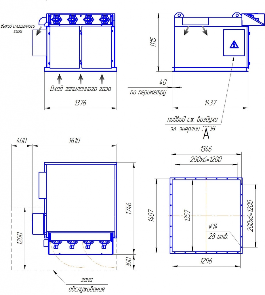 Максимальный расход очищаемого газа, при скорости фильтрации 2,2 м/мин | 6000 м3/час |
