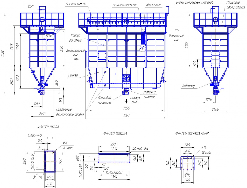 • Комплектация фильтрорукавами из материала с различными свойствами;