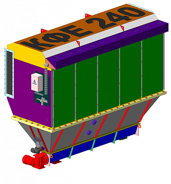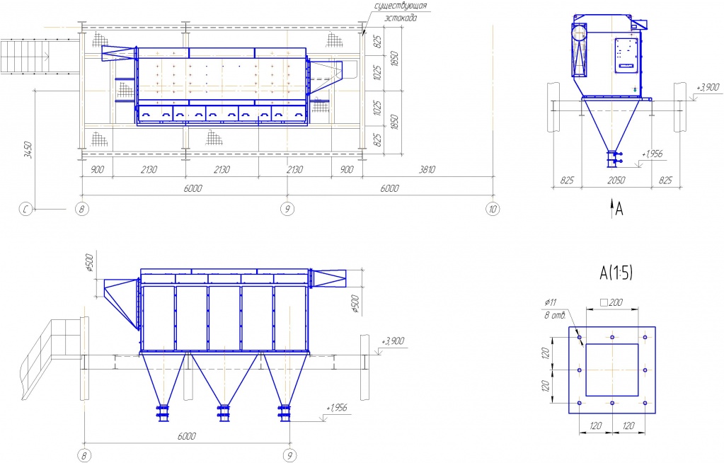 Под корпусом фильтра смонтирован подрукавный пирамидальный бункер со съемной шнековой частью, в которой расположен шнековый конвейер. К фланцу выгрузки из съемной шнековой части могут быть смонтированы дополнительные устройства пылевыгрузки.