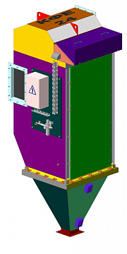 Под корпусом фильтра смонтирован подрукавный пирамидальный бункер без шнека. К фланцу выгрузки из бункера могут быть смонтированы дополнительные устройства пылевыгрузки.