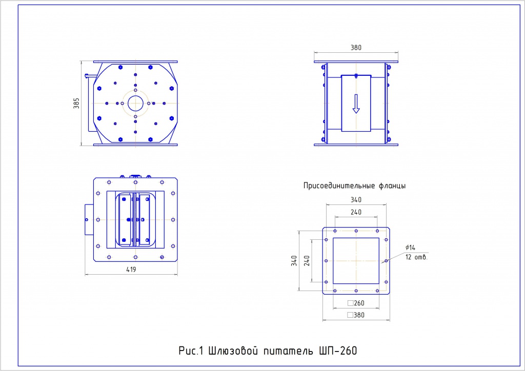Технические характеристики шлюзовых питателей с электроприводом: