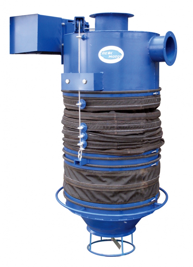 В устройствах беспылевой загрузки, которые оснащены рукавным фильтром, неочищенный воздух проходит сквозь фильтроэлементы при помощи встроенного вентилятора, очищается от пыли, и уже очищенным выбрасывается в атмосферу. При помощи импульсов сжатого воздуха собранная пыль стряхивается с фильтроэлементов и ссыпается обратно к источнику пыления через канал загрузки. В итоге очищенный воздух имеет остаточную запыленность не более 10 мг/м3.