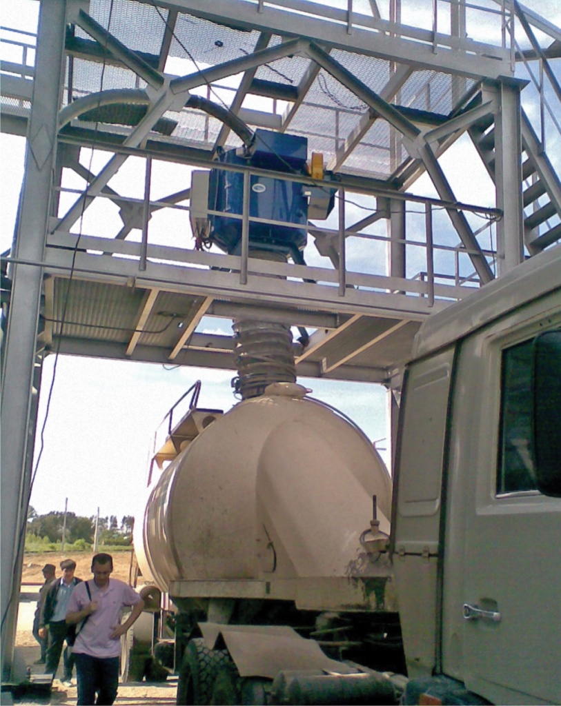 При «открытой» загрузке аспирация и купирование пыли происходят при помощи «фартуков» большего диаметра, изготовленных из специальных компонентов. При «закрытой» загрузке, непосредственно в люки транспортного средства, локализация осуществляется через щелевой отсос загрузочной воронки.